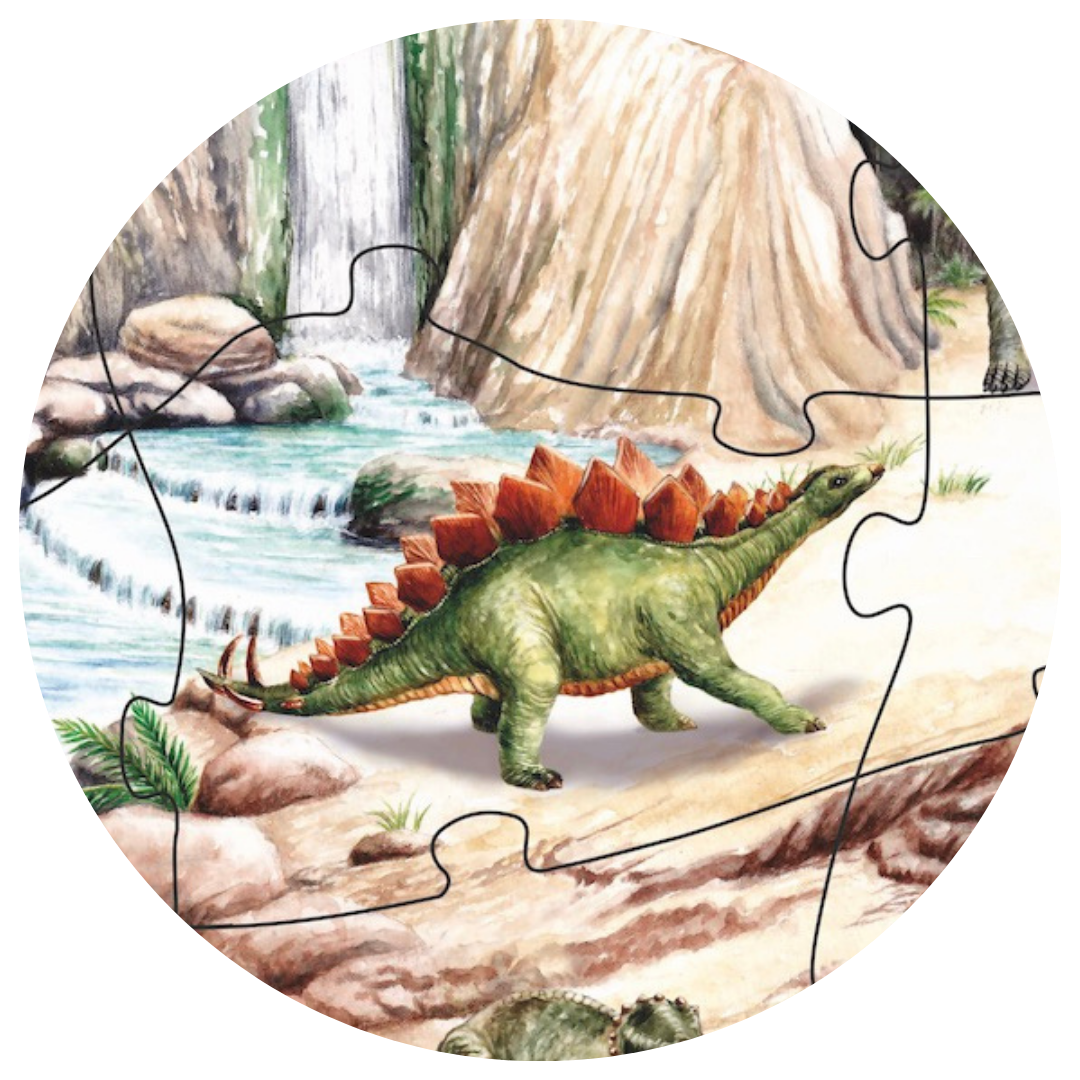 Пазл «Динозавры» выполнен в технике акварели и изначально был нарисован на бумаге, а затем оцифрован. Для этого пазла рисовали отдельно фон, отдельно динозавров в большом размере, чтоб были хорошо видны рельефы и текстуры доисторических ящеров.