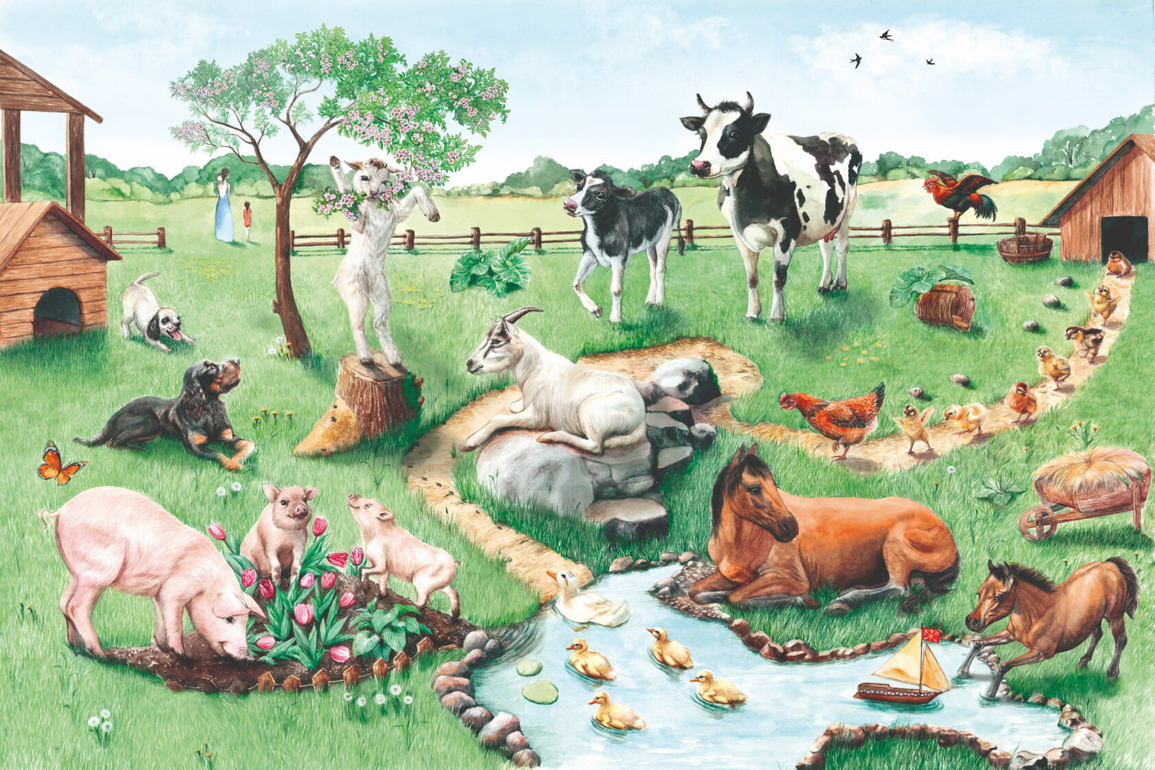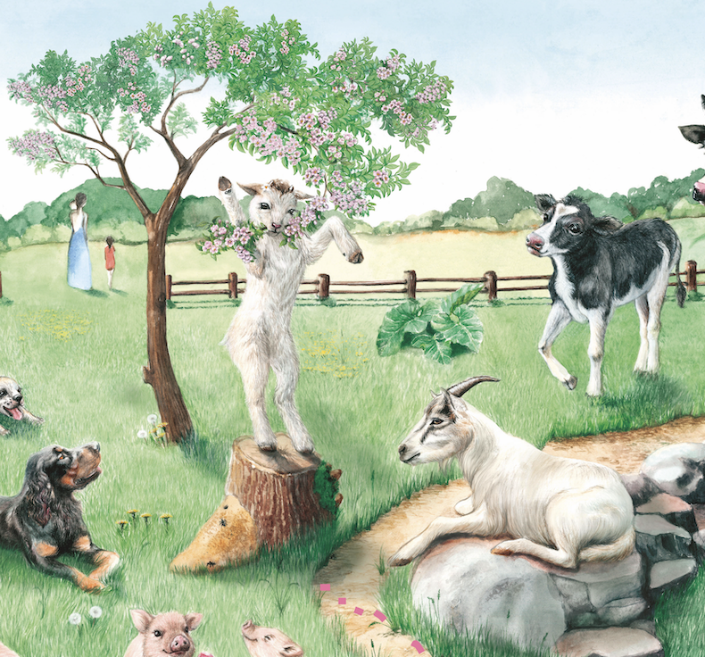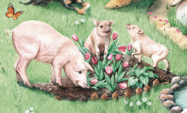 На холсте изображена бродячая труппа акробатов. Гимнастка балансирует на шаре; подле нее отдыхает силач. Вдалеке — женщина с ребенком (их мы оставили в пазле почти без изменений). Пикассо обыгрывает в полотне контрасты: хрупкость и мощь, шар и куб, движение и неподвижность. И около нашей козочки тоже есть свой «силач», правда?