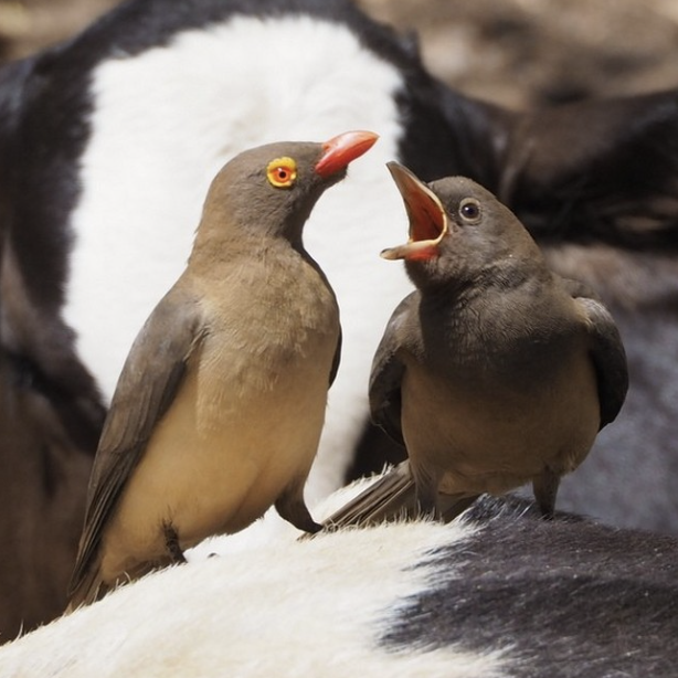 Волоклюи выклевывают из толстой шкуры крупных животных насекомых и подолгу сидят на спинах у животных.