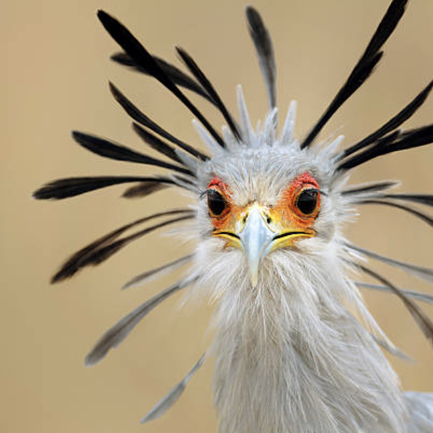 Птица-секретарь не имеет оперения вокруг глаз.