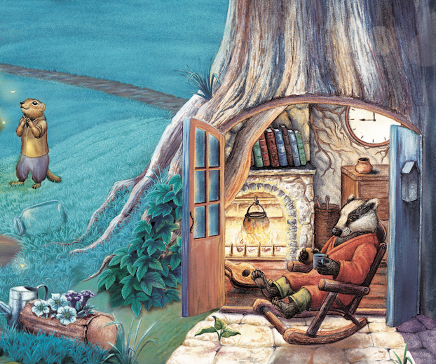 Господин Барсук - важное животное. Ты знал, что барсуки - чистюли не меньше енотов? Они обожают убирать свои жилища, в целом животные хозяйственные, ответственные и дружелюбные, всем нравится с ними иметь дело. Вот на часах 9 вечера, Барсук проделал генеральную уборку, накинул халат, налил себе чаю и думает: "Мой день только начался, а я уже сколько всего переделал. Дай-ка отдохну". (Дада, день у Барсуков начинается вечером, они ночные животные).