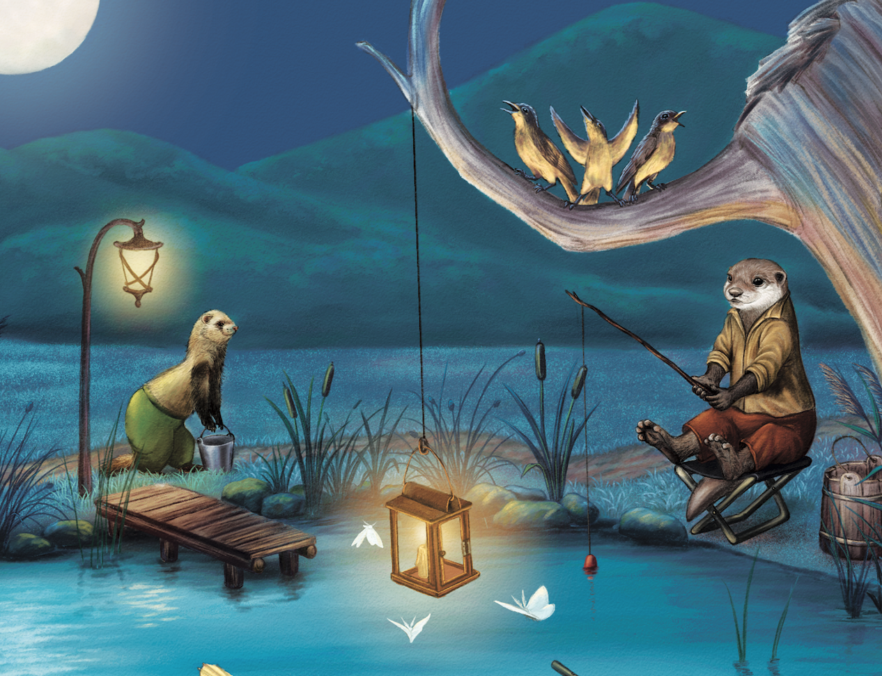 Юный хорек быстрый, проворный и ловкий. Бегает туда-сюда с ведрами, носит рыбу и договаривается с покупателями. Хотя, если честно, главный клиент и покупатель у них один - хозяин Лис. Он управляет лесным рестораном под большой Ивой, что рядом с озером. Именно поэтому дяде Выдре и приходится брать свой складной стульчик и каждый день топать до озера, чтоб доставить Лису самую свежую рыбу. Но в этот раз что-то рыба ловится очень слабо ...