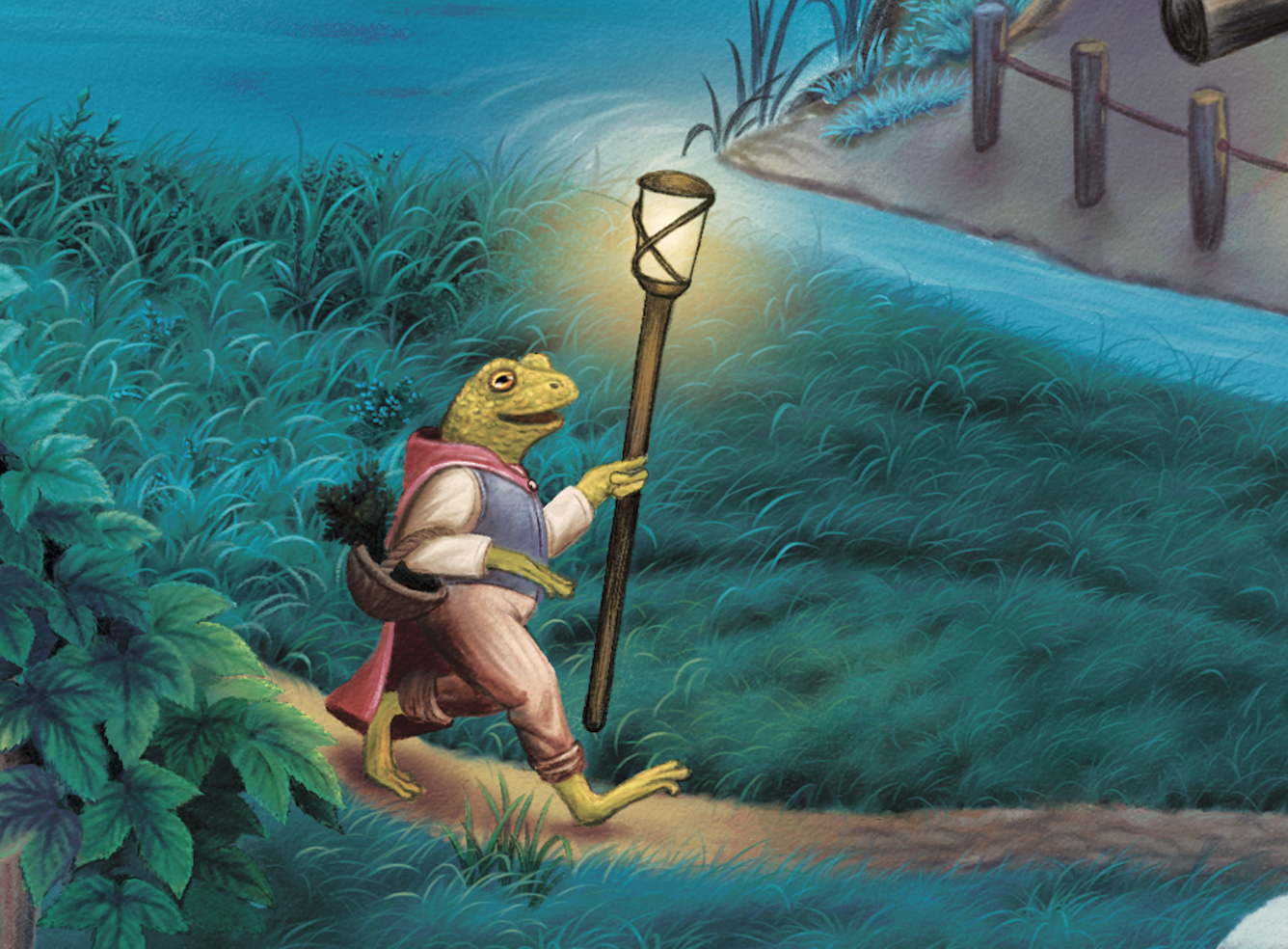 Дело в том, что Жаб ловит комаров, а его помощники-головастики, которые живут в озере, очищают воду. Да, Важный Жаб, кажется, действительно Важный. Он это знает и не отвлекается, идет прямо по делам.